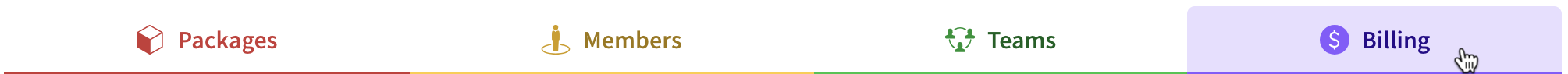 4. On the organization settings page, click Billing. Screenshot of the organization billing tab